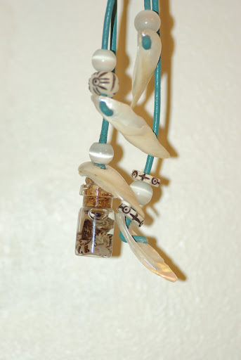 Un grand nombre de mes coquillages sont minuscules : des macrocoquillages de 1mm à quelques mm j'en remplis de petites fioles en verre pour créer des colliers élégants mais ludiques.